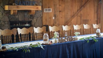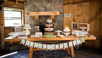 We supply a 10ft long wooden table which is often used as a dessert table, guest book table or the head table for the wedding party.