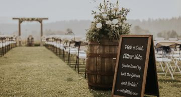 We have a permanent arbor located just outside The Cattle Barn with a beautiful back drop of the Swauk Valley.